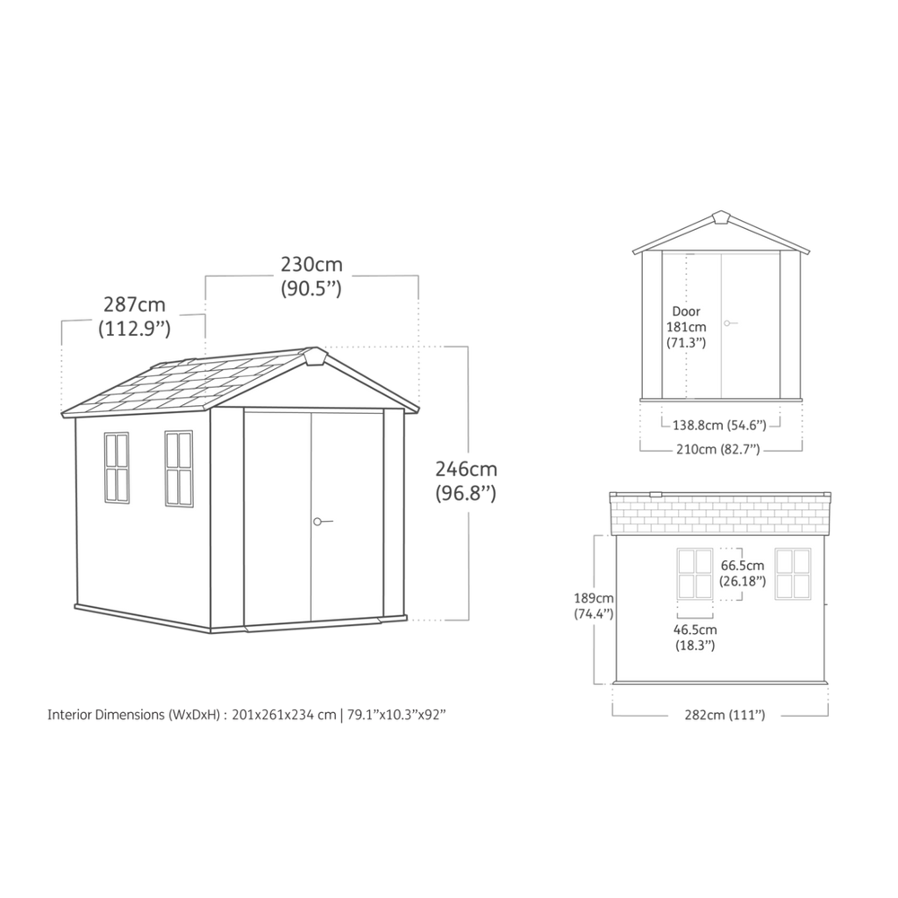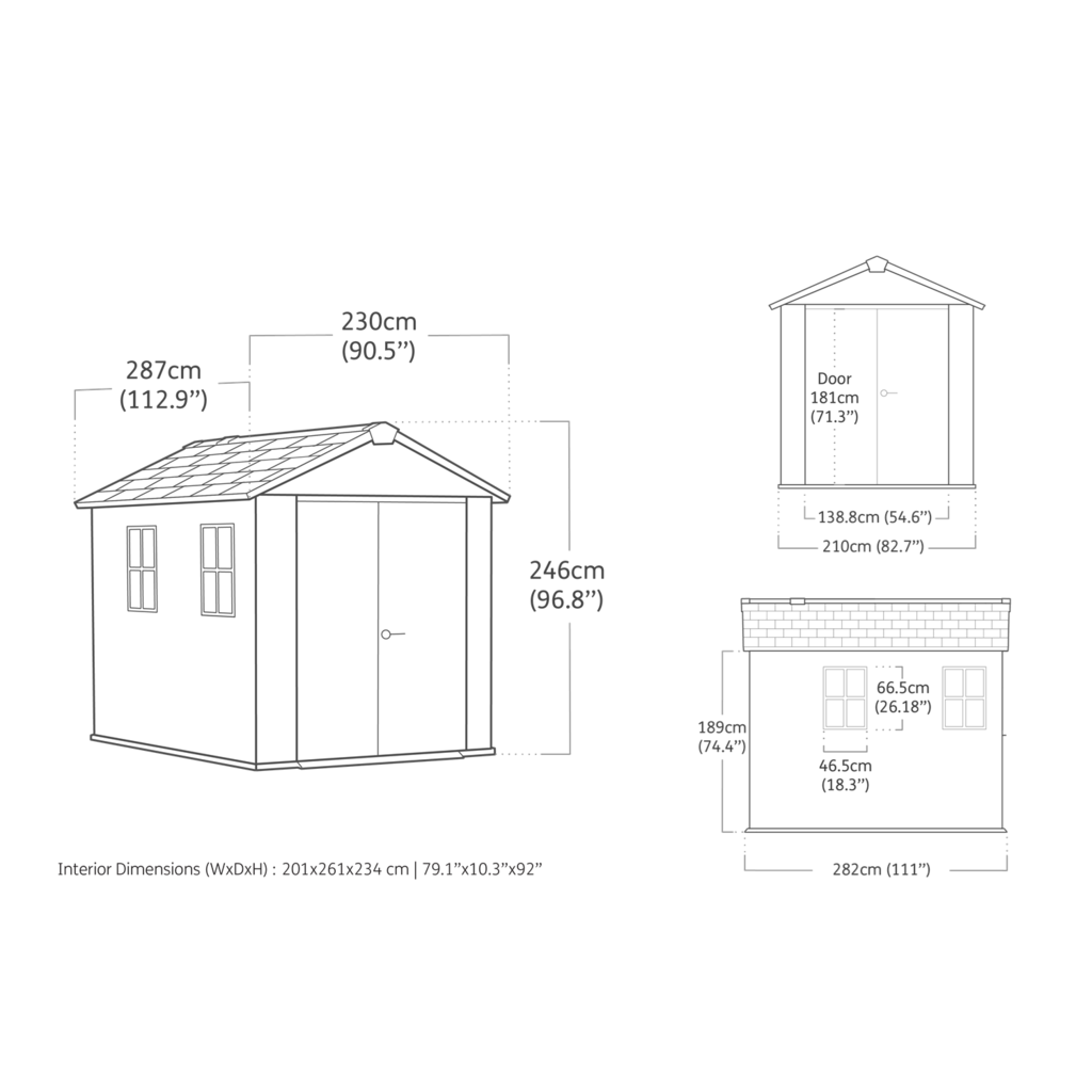 Depósito 759: Ancho (frente) 230cm x Prof 287cm x Alto 246cm