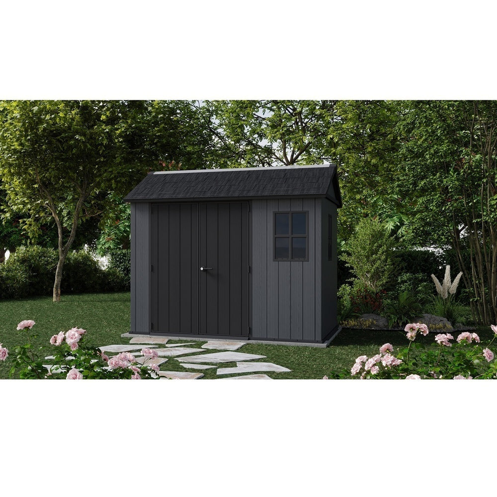 Tú eliges la disposición de puertas y ventanas en los novedosos depósitos de exterior para jardín Newton Plus.