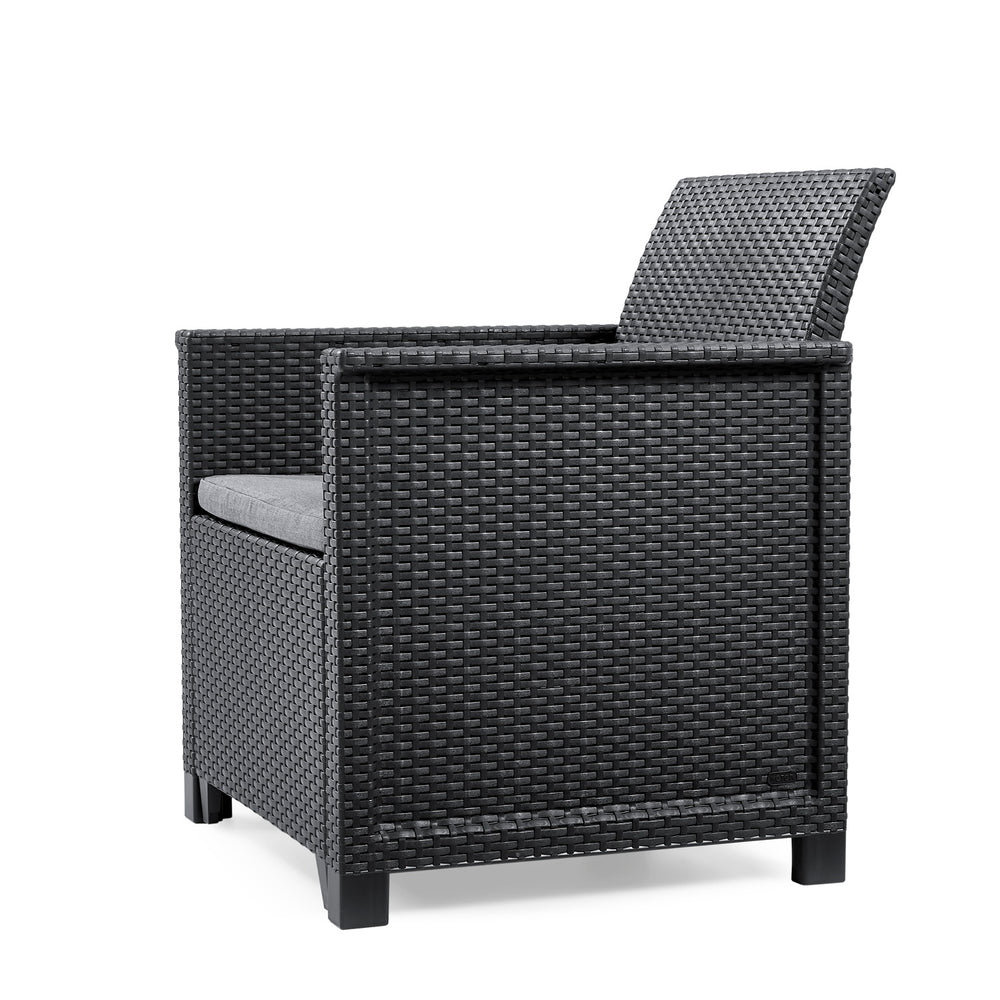 Muebles de diseño muy moderno combinados con una calidad extra de fabricación que permiten adecuar a la perfección el espacio del jardín. Se trata de un conjunto precioso con textura de rattán.