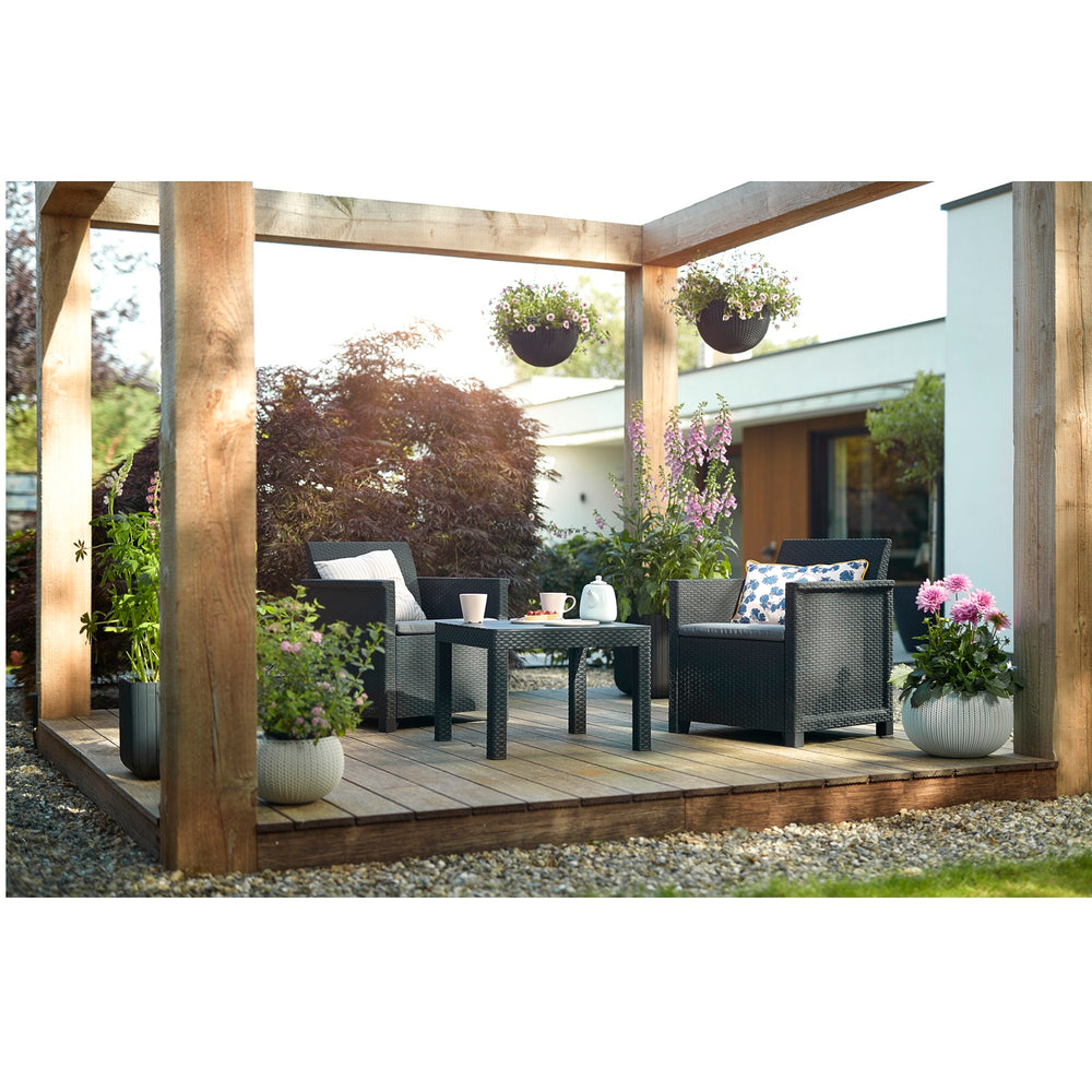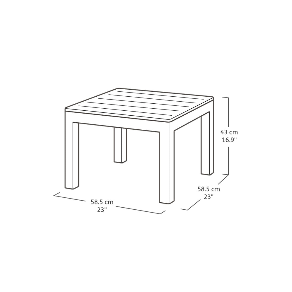 Todo lo que necesita hacer es tratar las superficies de vez en cuando con un detergente suave y un cepillo. Incluso después de muchos años de uso al aire libre, el plástico conserva su color sin decolorarse. Incluso la lluvia, el sol brillante o la nieve no son un problema para el conjunto.