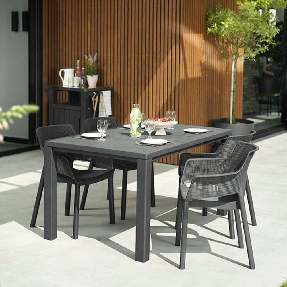 La mesa Keter Julie es una opción elegante y funcional para crear un espacio de comedor al aire libre. Su diseño moderno y líneas simples permiten que se integre perfectamente tanto en ambientes clásicos como contemporáneos. Su amplia superficie es ideal para reuniones familiares, almuerzos en el jardín o encuentros con amigos.